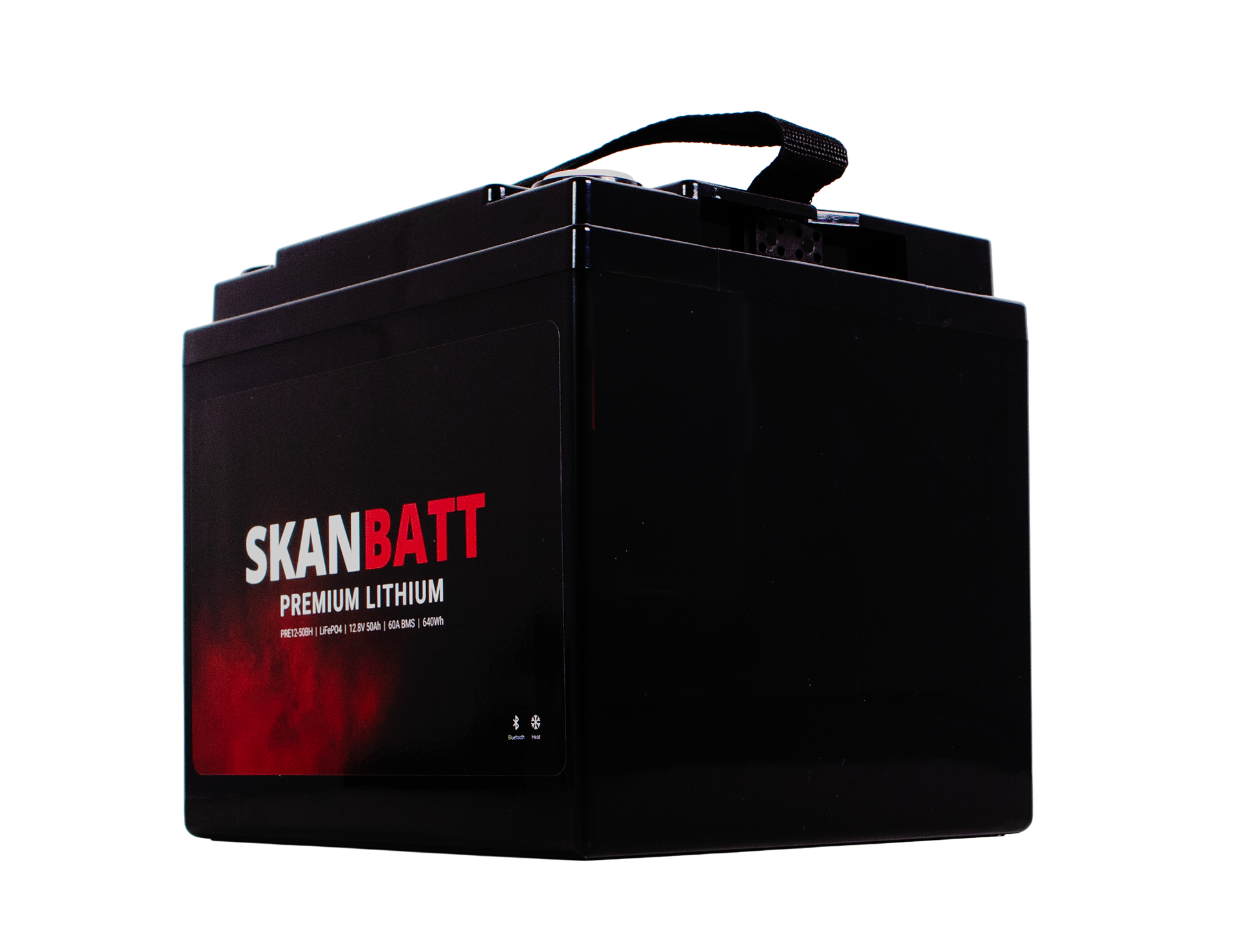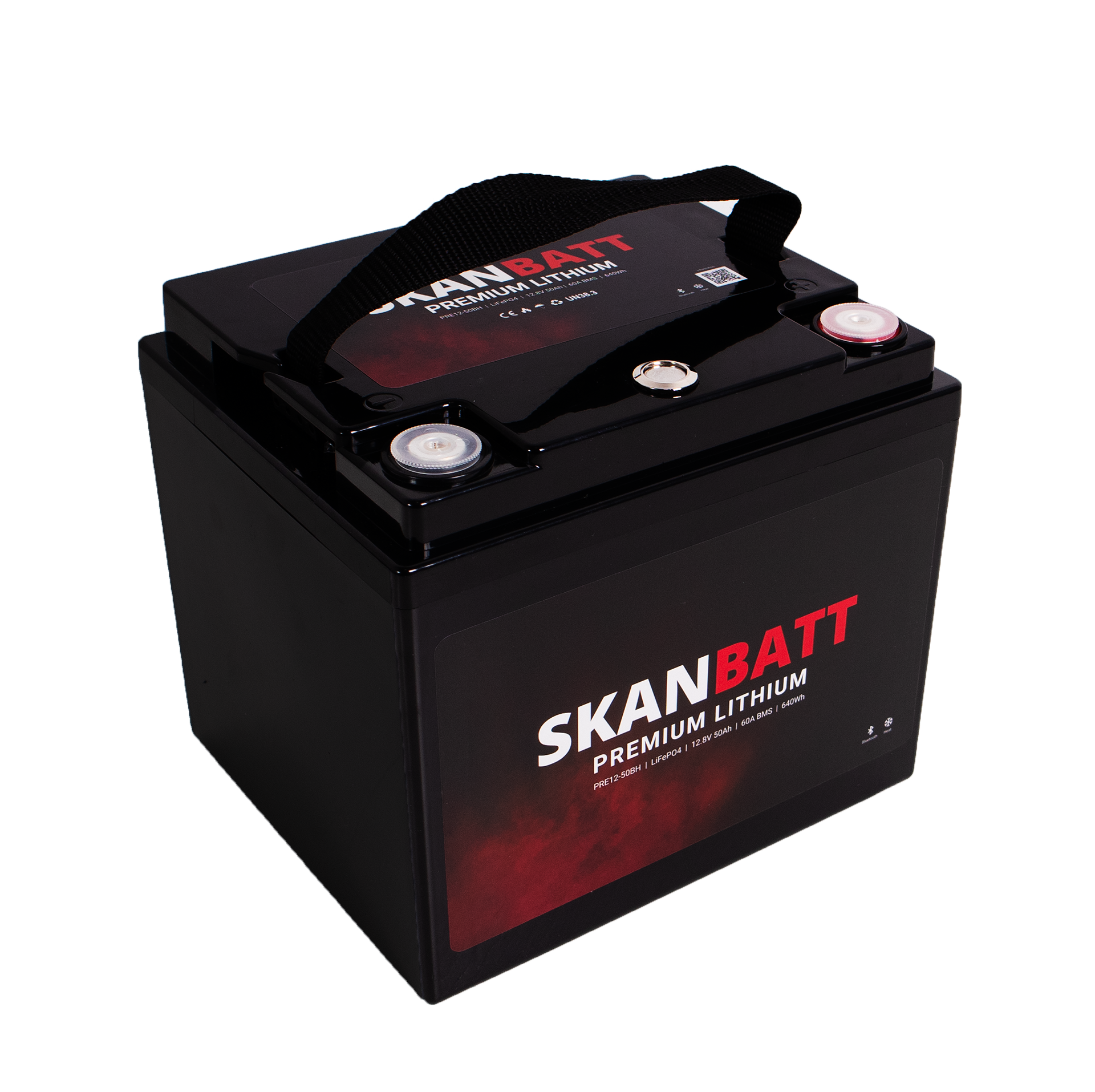 PRE12-50BH ingår i Skanbatt PREMIUM-serien. Batteriet kombinerar marknadens bästa LiFePO₄-celler med avancerat och robust BMS, anpassat till nordiska förhållanden. Ett smidigt och lätt batteri för den som vill driva enklare utrustning som exempelvis belysning, ekolod, kylbox, vattenpump etc. Med inbyggd värme kan batteriet laddas i minusgrader.