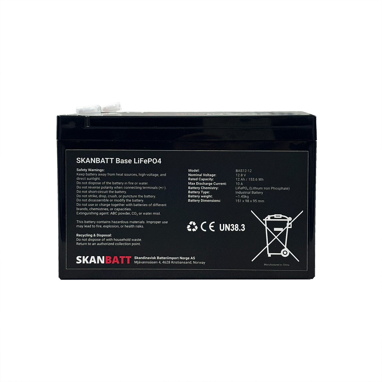 BAS12-12 från Skanbatt BASE-serien är ett kompakt och robust litiumbatteri baserat på LiFePO₄-teknik. Batteriet ger dig säker och stabil ström i ett litet format – perfekt för mindre applikationer där låg vikt, hög säkerhet och lång livslängd är avgörande.