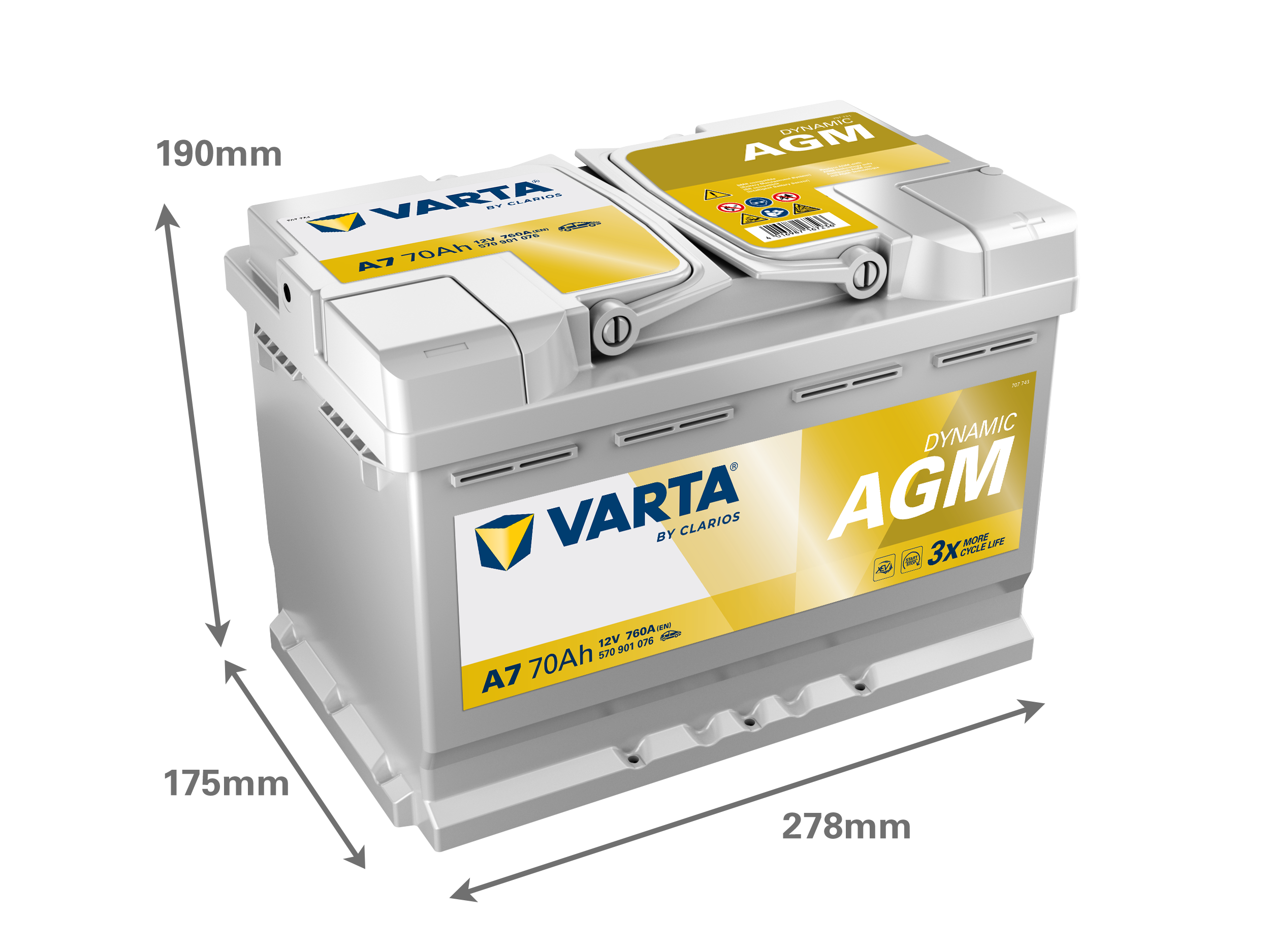 - VARTA® AGM (Absorbent Glass Fibre Cloth Technology) ger enastående prestanda för kraftfulla motorer och tunga fordon