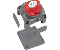 Huvudströmbrytare av mycket hög kvalitet från BEP. 275 A konstant. 1250 A/15 sekunder. Kan försänkas genom att göra ett 52 mm hål. Nyckel kan tas bort. IP=67. Max systemspänning = 48V DC. Anslutningar: 10 mm