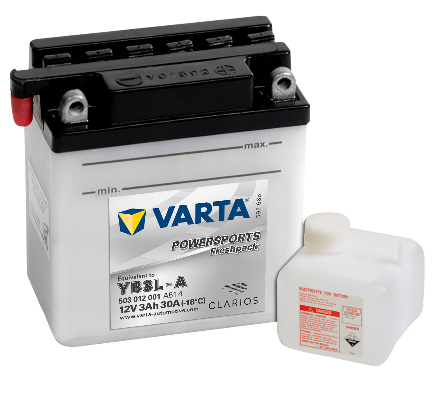 - VARTA MC Batteri 12V 3AH 30CCA (100x58x112mm) +höger YB3L-A