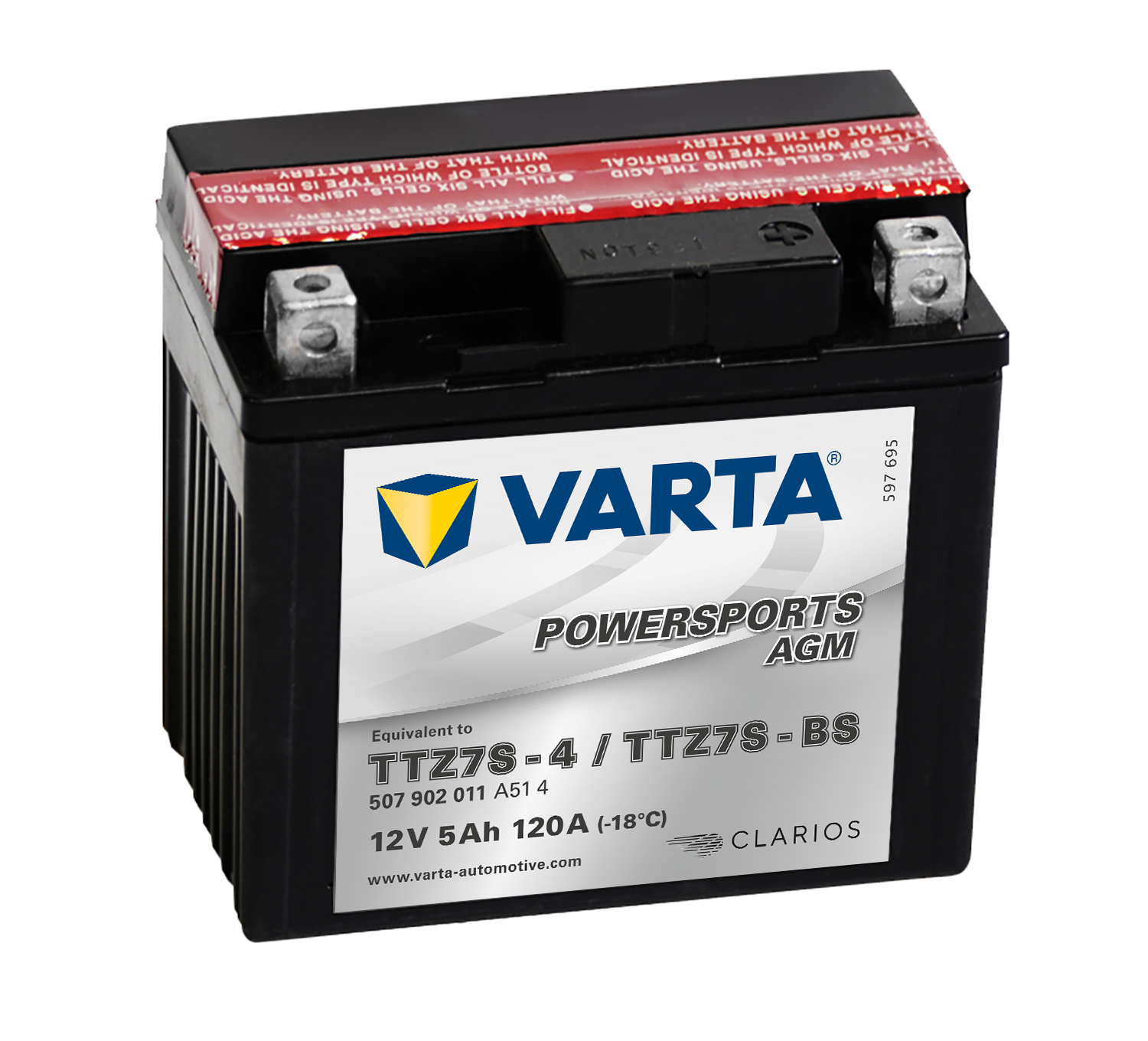 - VARTA AGM MC Batteri 12V 5AH 120CCA (113x70x105mm) +höger TTZ7S-BS (507902)