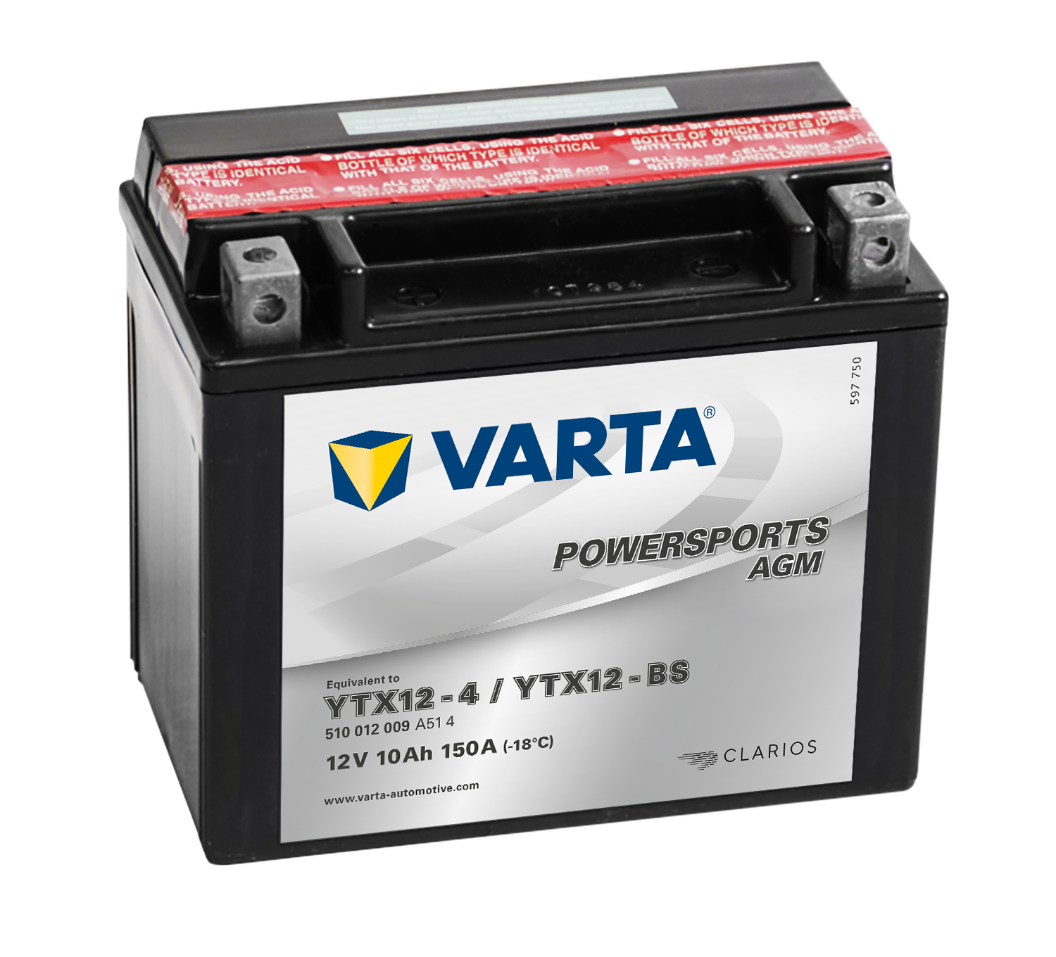 - VARTA AGM MC Batteri 12V 10AH 150CCA (152x88x131mm) +vänster TX12-BS