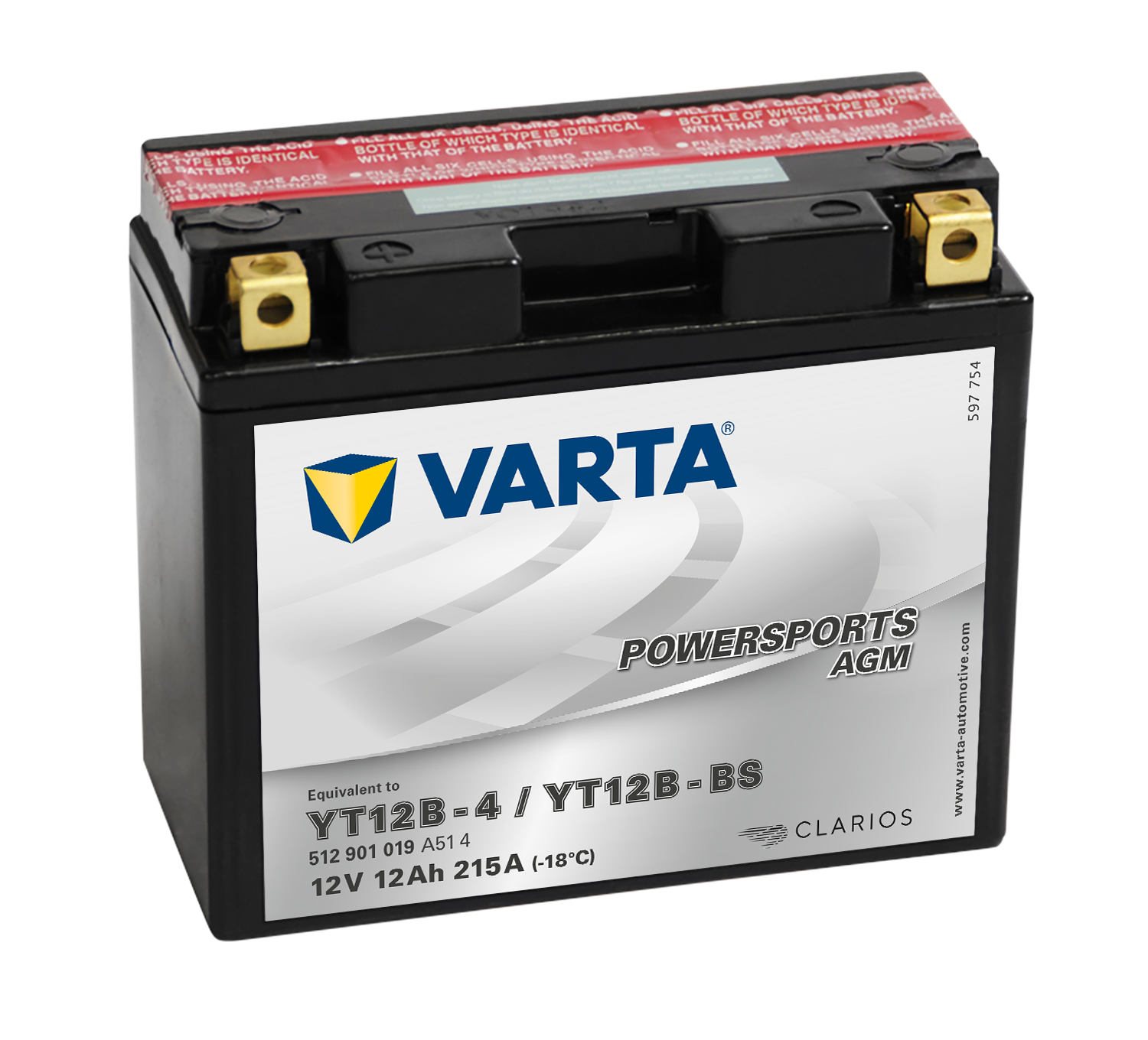- VARTA AGM MC Batteri 12V 12AH 160CCA (151x70x131mm) +vänster YT12B-BS