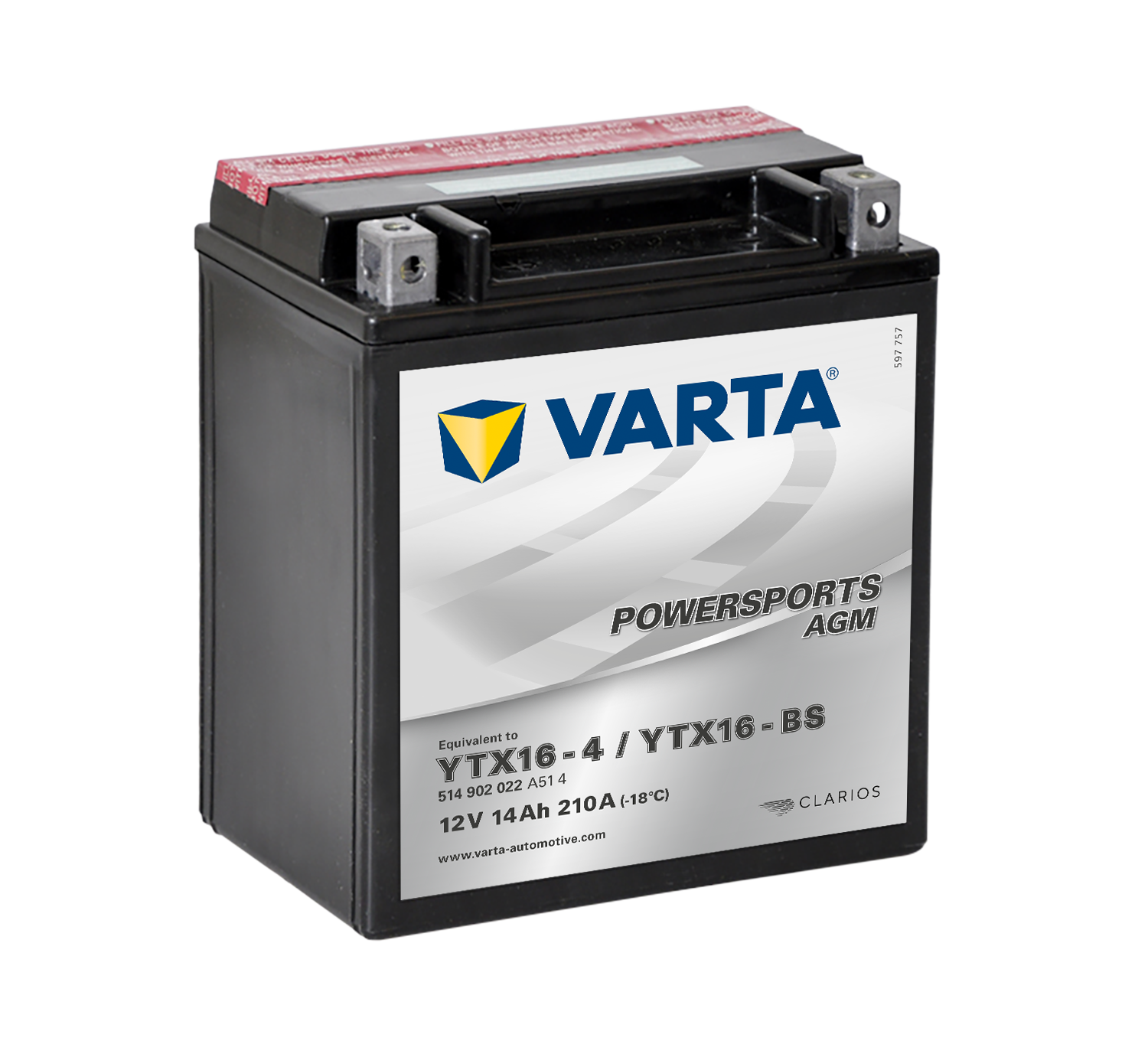 - VARTA AGM MC Batteri 12V 14AH 210CCA (150x87x161mm) +vänster YTX16-BS