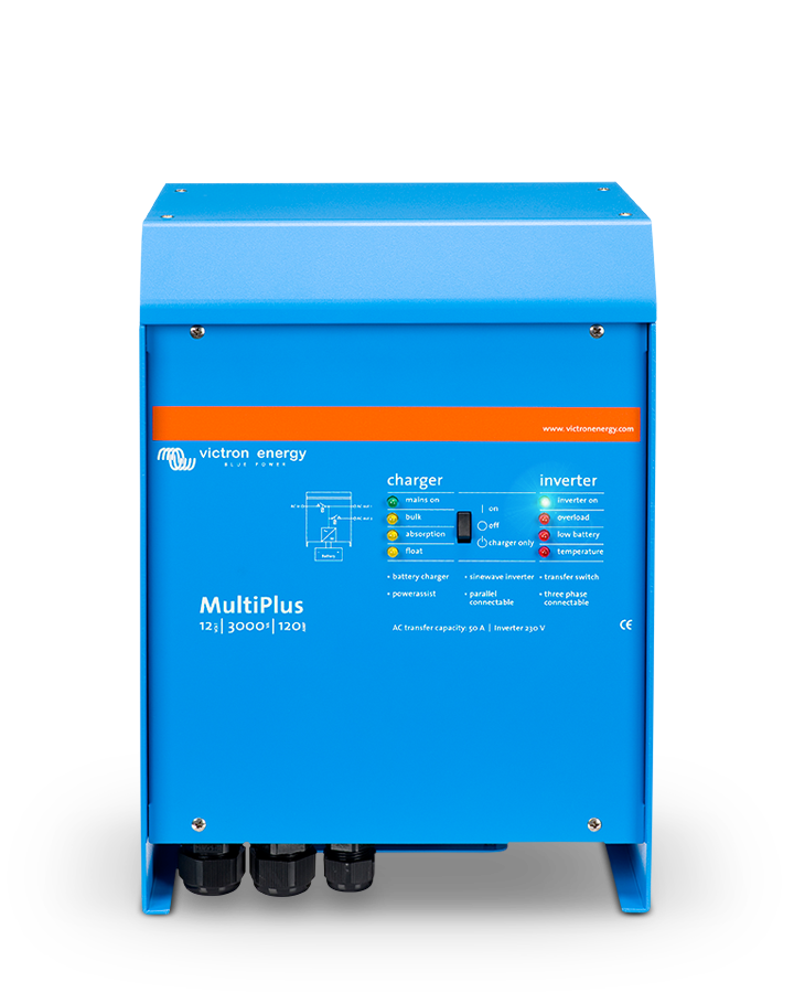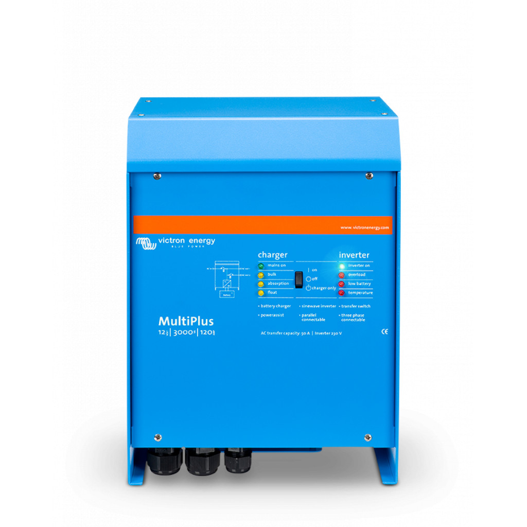 Multifunktionell MultiPlus är en kraftfull äkta sinusvågsinverter och en avancerad batteriladdare med adaptiv laddteknik och höghastighets-AC-överföringsbrytare i ett kompakt hölje.