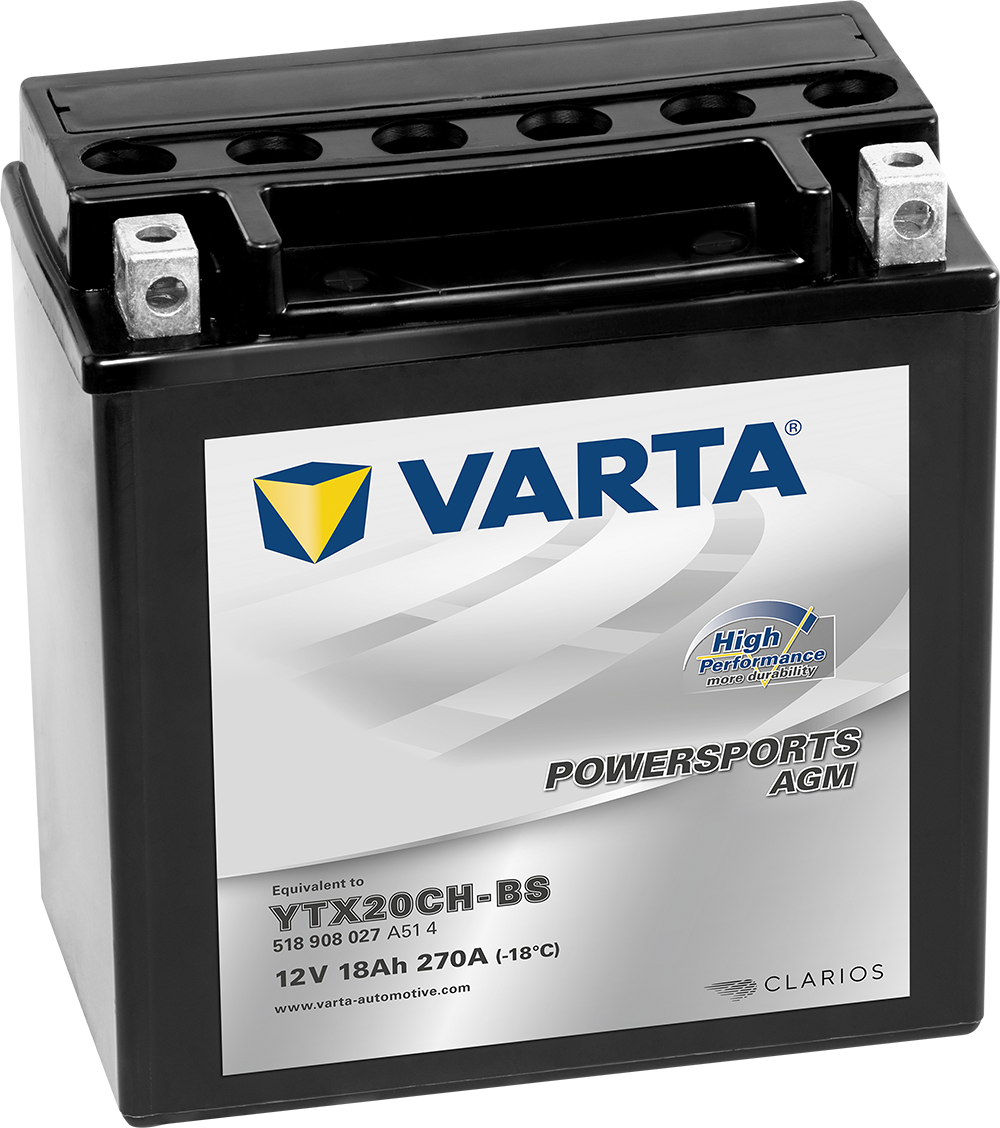 - VARTA AGM MC Batteri 12V 18AH 270CCA (150x87x161mm) + vänster YTX20CH-BS