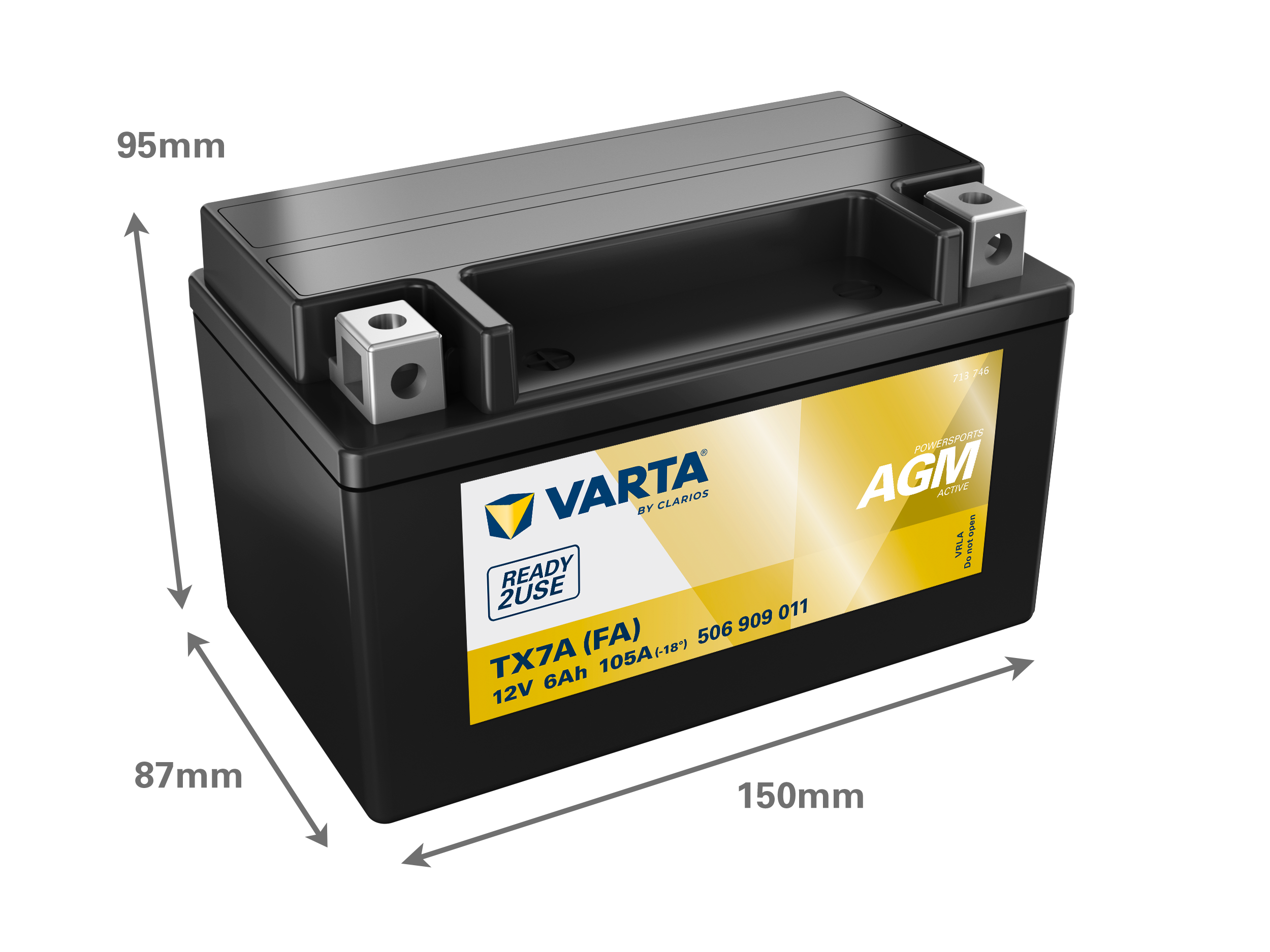 VARTA AGM MC Batteri 12V 6AH 105CCA Höga varvtal, långa resor och alla väder är aldrig något problem för de robusta VARTA® Powersports AGM-batterierna. Det är en produkt som är utformad för extrema förhållanden, så att den alltid levererar maximal