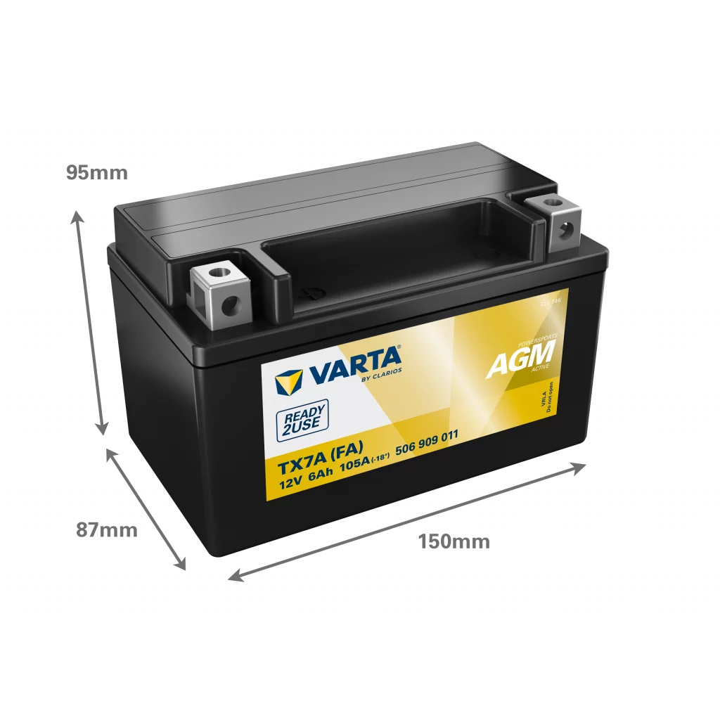 VARTA AGM MC Batteri 12V 6AH 105CCA (150x87x95mm) +vänster TX7A (FA)